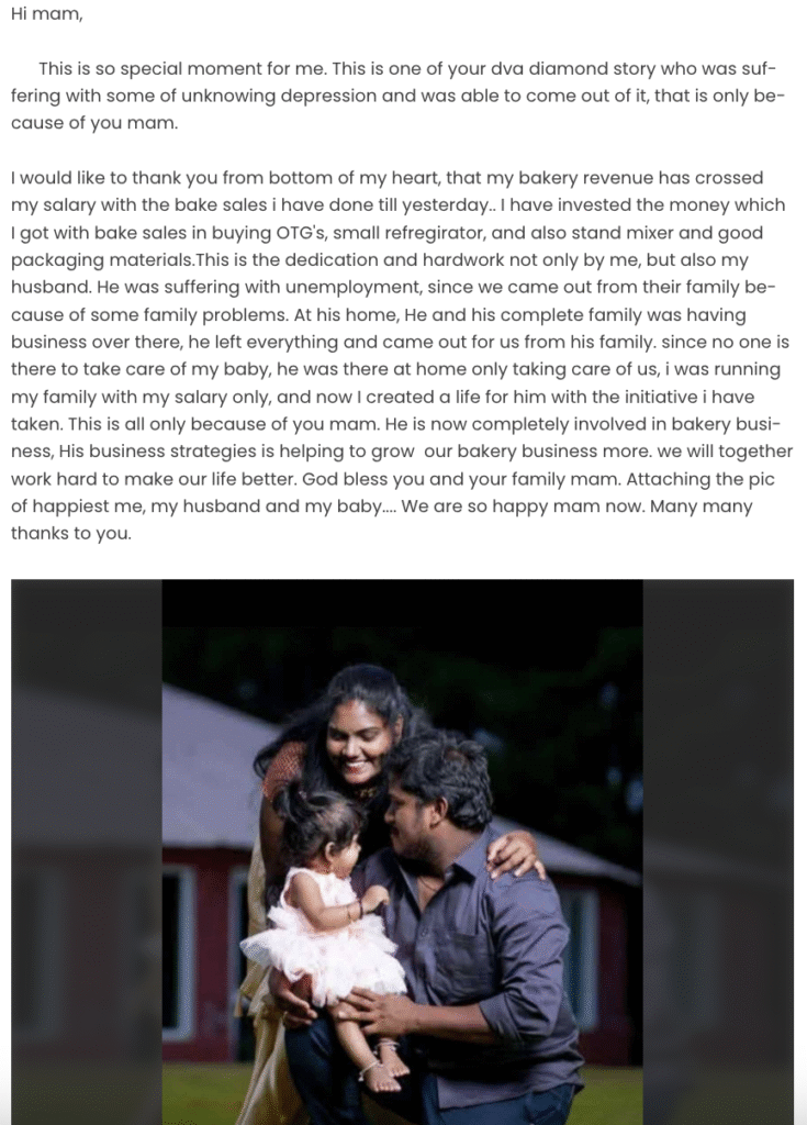 Today, Nandini runs a successful bakery business alongside her husband and is a shining example of what’s possible when passion meets purpose.